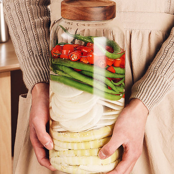 1แกลลอน1.2L 2L 3l 4L Airtight Acacia สกรูฝาแก้ว Pickle คอนเทนเนอร์ขนาดใหญ่ความจุแก้ว Mason Jar สำหรับ Home Kitchen